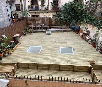 Instalamos tarimas resistentes y decorativas para terrazas, jardines y patios. Usamos materiales duraderos que aguantan el paso del tiempo y las condiciones climáticas.